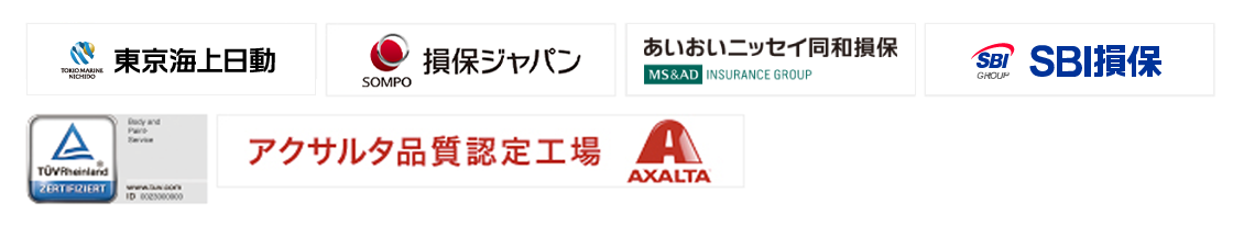 東京海上日動、損保ジャパン、あいおい損保、他通販保険会社等多くの損保会社に修理指定工場として認定されています。